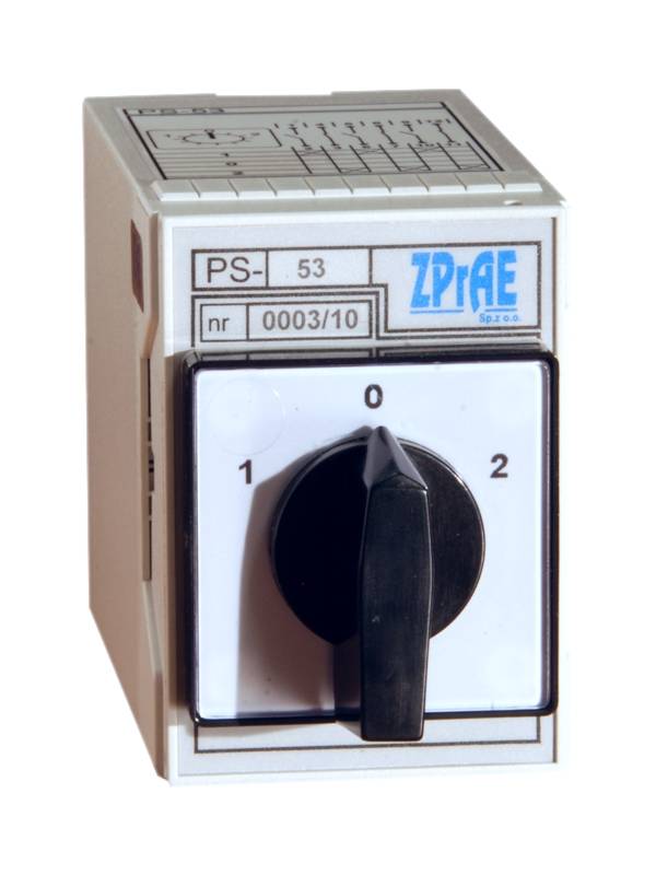 Modules of lighted pushbuttons PH-xx are meant for use in steering, signalling and protection circuits. They represent supplementary equipment to the family of relays enabling construction of steering switches mounted on the level of relays, using same type of housing and sockets. The PS-xx has a cam switch type 4G10 produced by “Apator” with a chosen diagram of connections. It is possible to use a switch with maximally 5 packages and maximally 14 terminals. Those combinations enable multiple steering solutions in the external circuits.