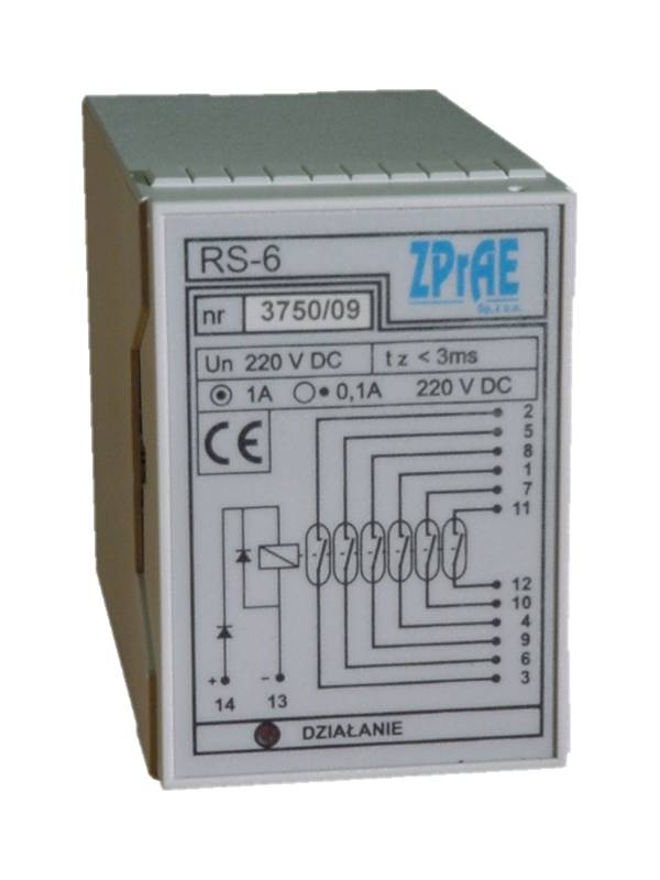 The RS-6 relay is meant for use in automatic control circuits requiring short time operating and drop out time. This is a very quick auxiliary interposing relay for control and protection systems. The RS-6 relay has a making capacity comparable with other auxiliary relays, and its contacts can operate in 6 different 220 V DC circuits.
