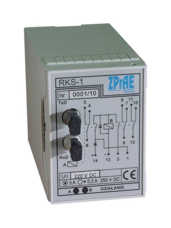 The final controlling relay RKS-1 is meant for use in control, signalling and protection circuits as final controlling elements activated directly from a fibre-optic ST-type link. The relays are controlled with a ZP-6 software delivered along with our devices or may be controlled with software of other producers. A sample application of the relay may be steering of the acoustic signalisation panel used in MSA signalling system, placed away from the computer controlling stand.
