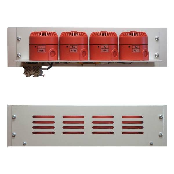 Three sirens are designed for work with 220 (110) V DC voltage, and one for work with guaranteed 230 V AC. The panel is dedicated to cooperate with the acoustics steering module – MWA, and each siren is steered with a separate output.